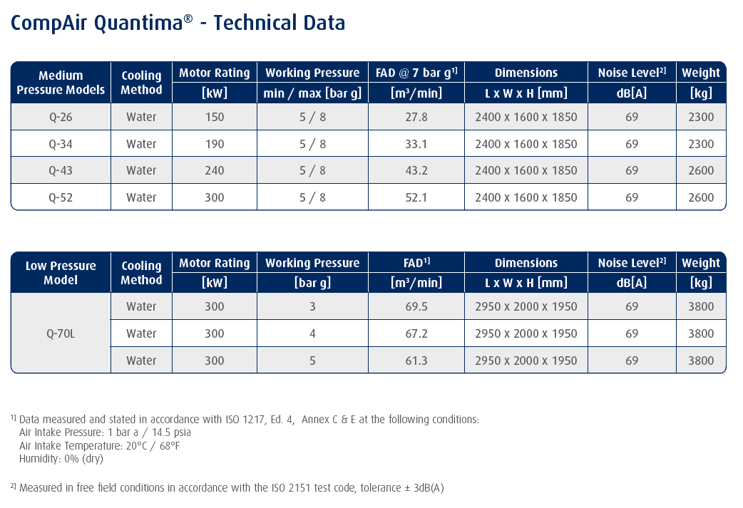 The CompAir Quantima series delivers significant benefits over traditional technology. Offering outstanding energy efficiency, reliability and low environmental impact, Quantima also offers low noise levels at 69 db(A) and a physical footprint around 25% smaller than any comparable product in the market.